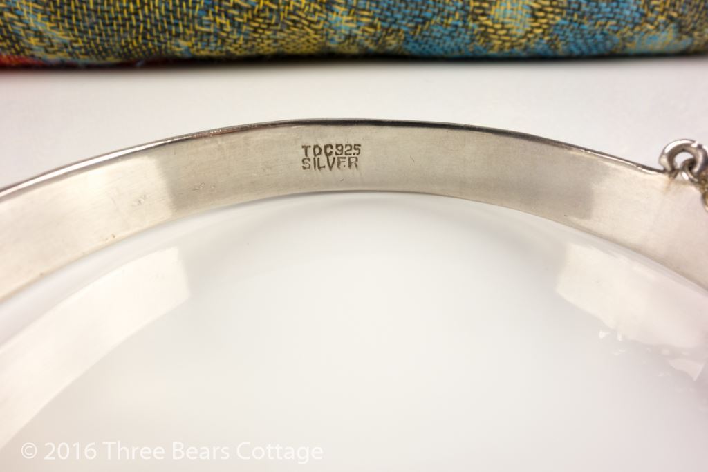 The only mark reads "TOC925 SILVER". We've tested the metal as being .925 Sterling finesse silver but it's not hallmarked.
